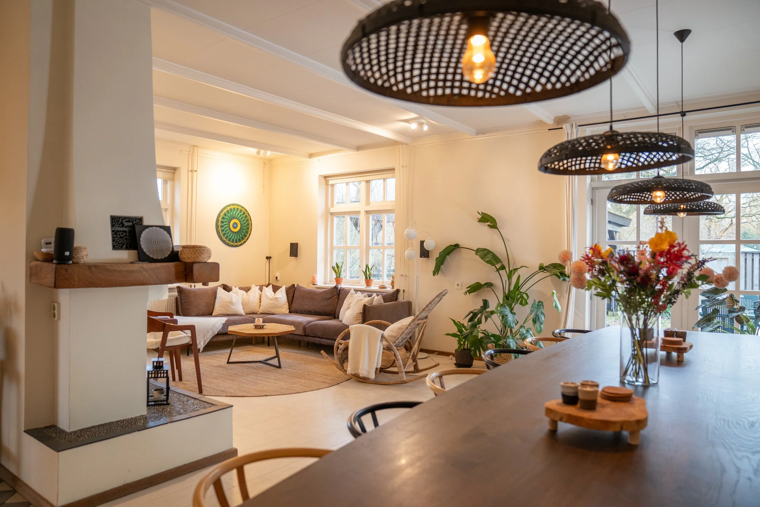 De Farmhouse bevat meerdere slaapkamers, een ruime woonkamer, een volledig uitgeruste keuken en diverse comfortabele hoekjes voor rust en reflectie. Het huis is ontworpen om groepsleven te ondersteunen: gezamenlijke maaltijden, gedeelde beoefening en stilte-momenten.